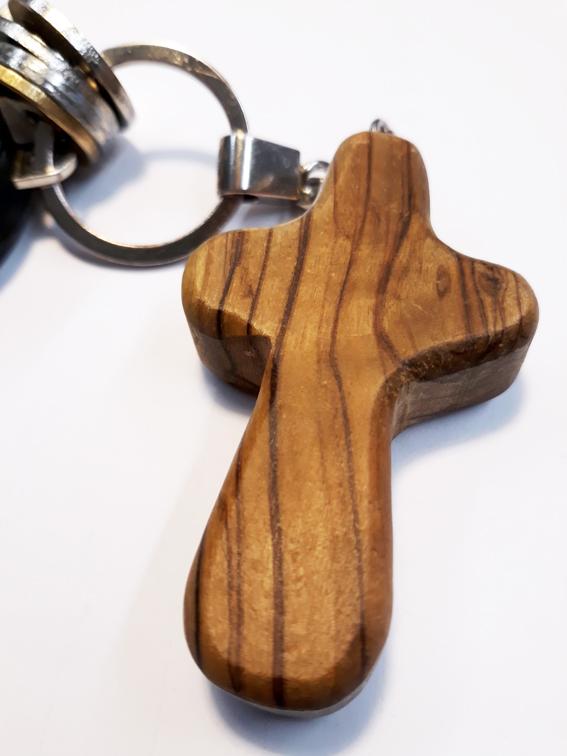 Box of 10 In the box you will find ten Olive wood keyring holding crosses from Bethlehem, in the Holy Land. They are made by a Palestinian Christi...